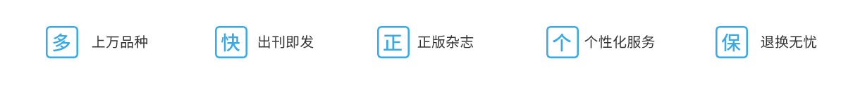 快递说明:月刊、双月刊、季刊,会在出刊后一周内发货。半月、旬刊,会在每个月的最后一期出刊后一周内打包一起发货。周刊,都是每月寄送1次。多本刊物订购,会在每月所有刊物到齐后统一打包后一同配送。如需要增加每月派送次数,可以联系客服补运费。如有疑问或特殊要求请咨询在线客服或联系订阅专员,我们尽量满足您的需求。